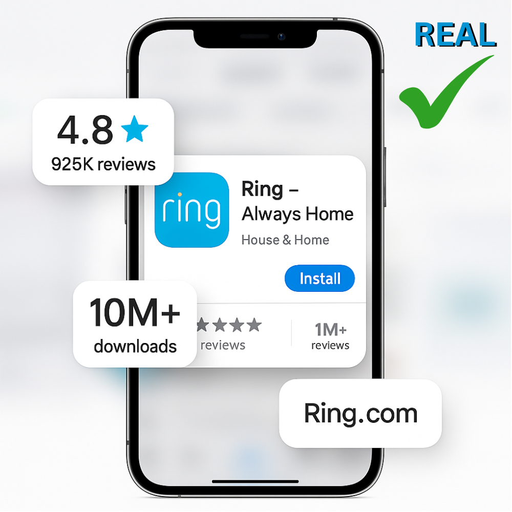 Some fake apps look similar to Ring. Always check for these signs before downloading: